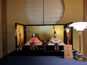 お越しになるお客様を、そっと見守るように佇むお雛様。